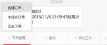 下单管理中有三个菜单,创建订单,未提交订单,历史下单
